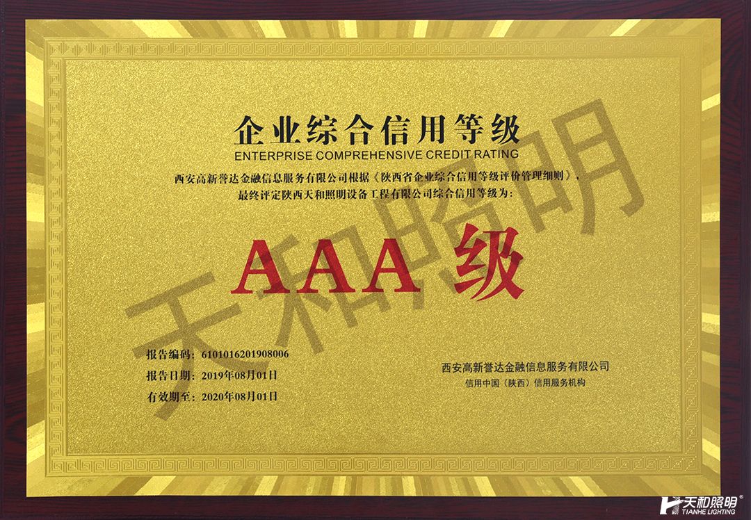 8月1日,天和照明順利取得企業(yè)AAA級信用等級。此次評級的通過,是對天和照明良好的公司信譽、綜合實力與競爭力、以及履約能力的充分肯定。 天和照明此次順利取得企業(yè)AAA級信用等級,對于企業(yè)合作、項目招投標、…